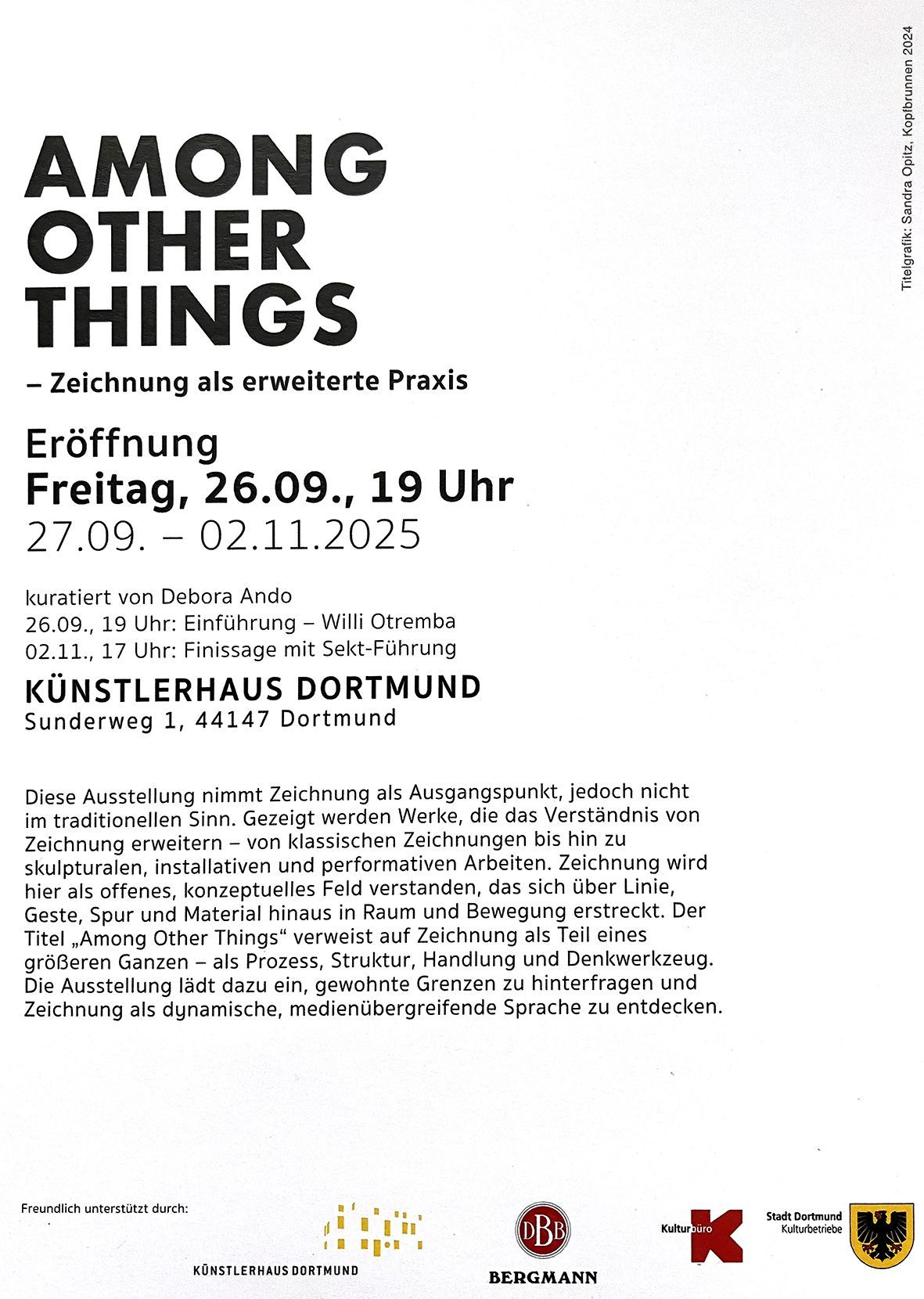 "AMONG OTHER THINGS – Zeichnung als erweiterte Praxis", 27.09.–02.11.2025, Künstlerhaus Dortmund