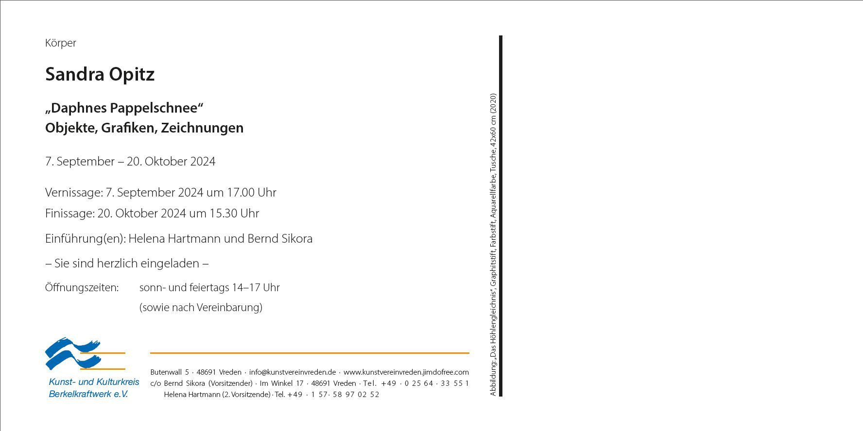 Sandra Opitz – "Daphnes Pappelschnee" – Objekte, Grafiken, Zeichnungen im Berkelkraftwerk, Vreden, 7. September – 20. Oktober 2024